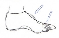 Többnyire a betegesen túlívelt lábboltozat (pes excavatus, pes cavus) esetében van az, hogy a cipő konfliktusban van a lábbal a láb hátoldalán: nyomja a lábat a cipő fűzője és a cipő más záró elemei.