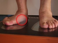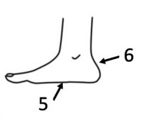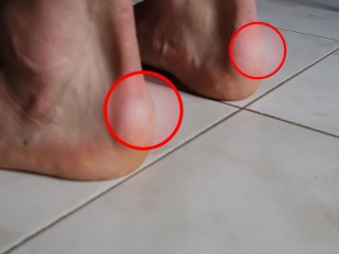 - A lábfej középső, külső oldali alsó szélén (tuberositas ossis metetarsalis) a csont rendszerint örökölt, túlzott mérete miatt a láb semmilyen konfekció cipőben nem tud megfelelően elhelyezkedni, ezt a csontot a cipő talpa felől állandó túlnyomás éri, itt fájdalmas bőrkeményedés (hyperkeratózis, clavus) fejlődhet.